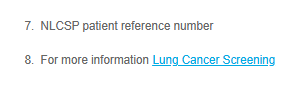 All the same except for additions of point 7 and 8 – link out to Tas HealthPathways Lung Cancer Screening page.